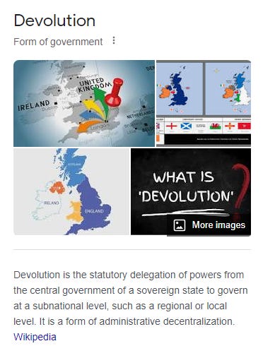 An article in Newsweek from March 2020 spoke about the subject of Devolution.