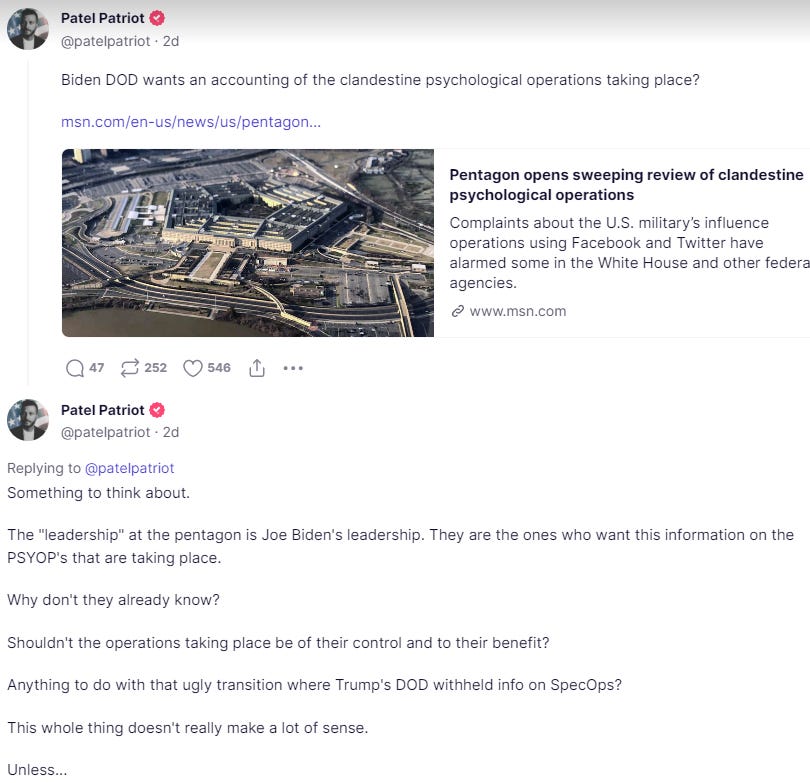 Speaking of national security, the Biden Administration recently called for a review of clandestine psychological operations. Why is it they don’t know this already? They should be privy to all things that have to do with national security. Psychological operations would also be on this list. Why would they not be in the know?