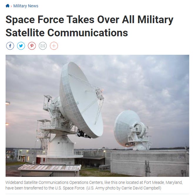 In August 2022 it was announced that the Space Force would be taking over all Military Satellite Communications. I can just hear the argument now. “But, Joe, this Space Force is under the Biden Administration.” I would go back to fraud vitiates everything. If I get pulled over by an ice cream truck and the ice cream man is telling me that I have to appear in court for speeding, I’m going to disregard that encounter as nonsense. The same goes for the authority of parties that were not legally elected. It should be null and void. I find it remarkable that the Space Force is heading up Military communications.